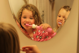 Ava's best friend since she was 3 months old spent the night tonight.. They brushed their teeth..